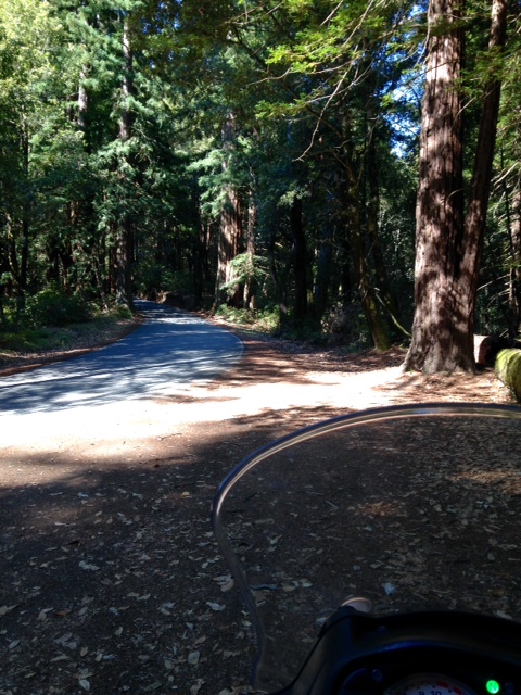 I stop by Alice’s Restaurant (popular motorcycle hangout) to top off my tank and chat with a few other riders doing the same thing. I head back out to 35 and enjoy the long sweeping curves. I make a turn for Hwy 9 which is another gem, and shortly after connect to Big Basin Hwy, CA-236.