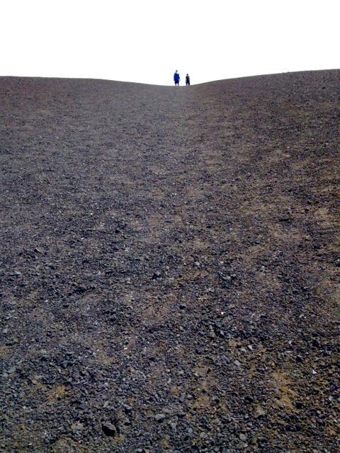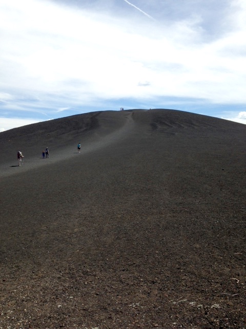 I kept looking for the main volcano, but actually this was mostly created by cinder cones and eruption fissures, in particular, the Great Rift. The Great Rift is a 50-mile long zone of fractures and eruptions. The cinder cones are formed around volcanic vents by lava fragments that are thrown during eruptions. This was the biggest cinder cone in the park and I got to climb to the top!