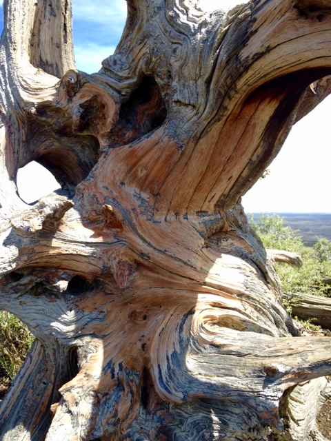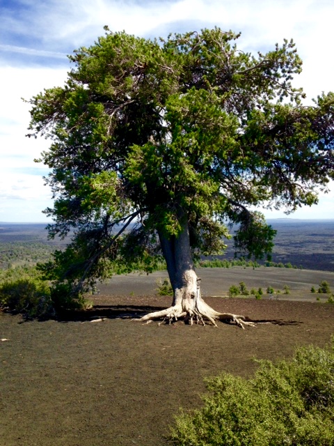 The last eruption was about 2,100 years ago and it seems the Shoshone actually witnessed this. As I hiked up the volcanic cone, I wondered when the next one might happen. Scientists think it will happen within the next 1,000 years. It was hot and steep, but once I finally made it up to the top, I was amazed to see this tree, in the middle of hardened lava where you would expect nothing to grow.