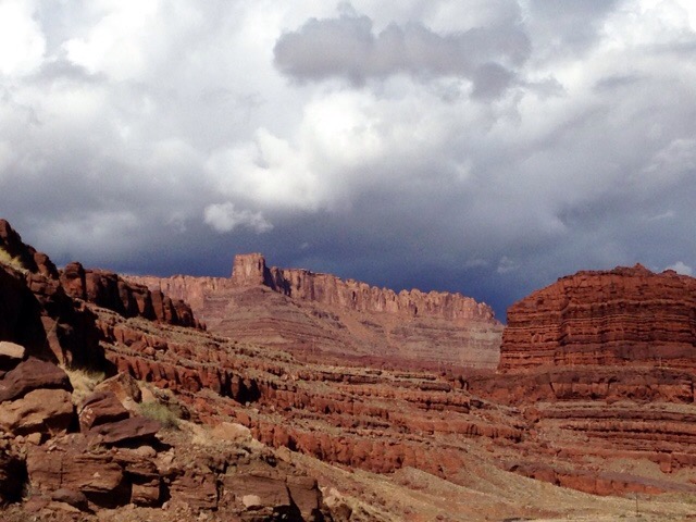 After getting our fill of the remote control jeeps, we headed onto our next destination, Fisher Towers.  Leaving this area, I couldn’t help but notice how beautiful this dark sky looked against the red rocks: