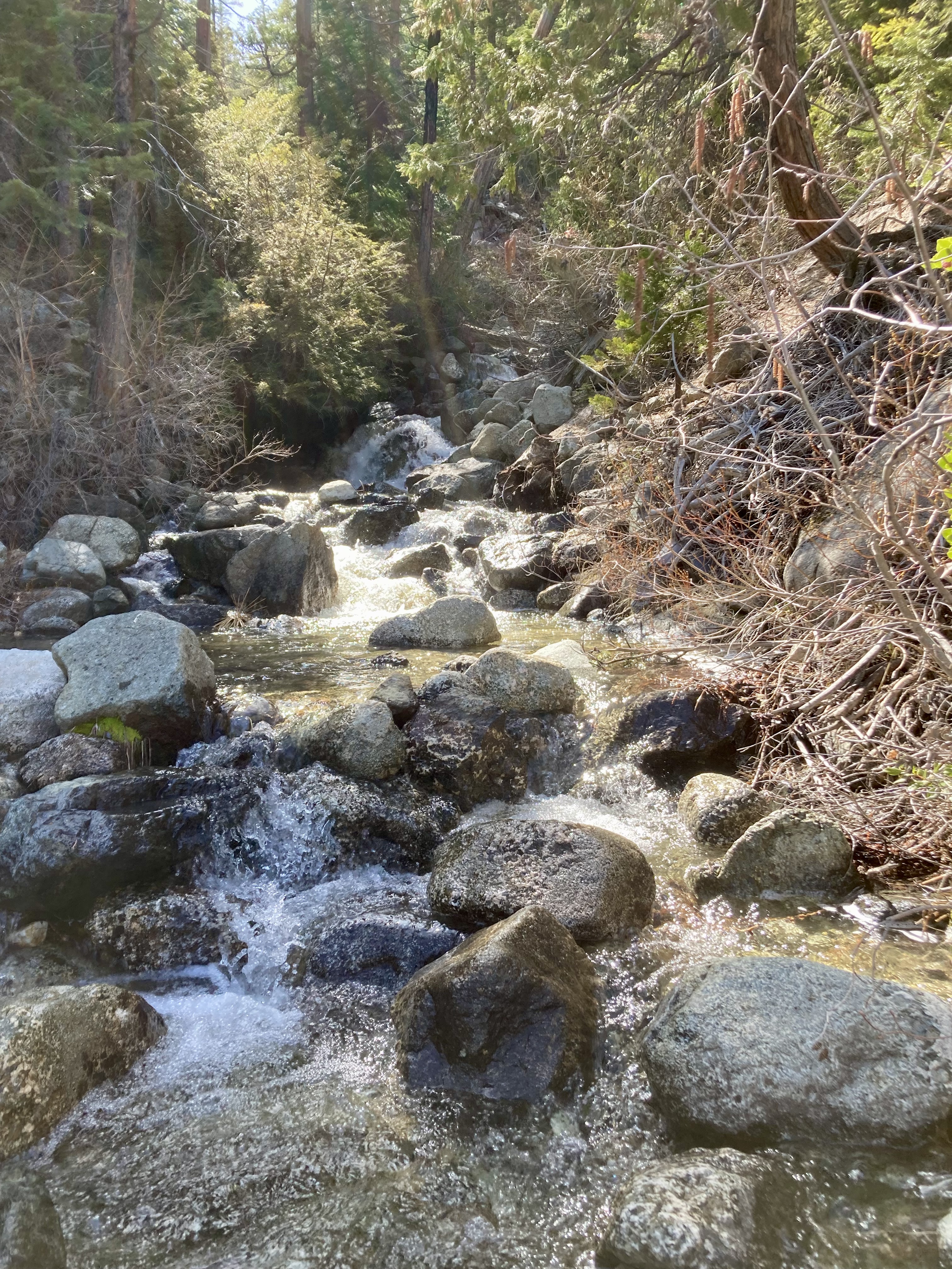 A rushing creek that could have passed for a waterfall made for an excellent place to stop for a snack.